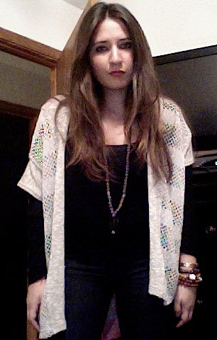 Off to Syracuse's hot-spot Bar, MK went to Harry's in all black, throwing Urban Outfitter's short-sleeve, neutral gray cardigan on top. Spicing up the outfit, MK rocks HIPCHIK beads- both the necklace & bracelet. These amazing beads, often with Buddha's and Skulls, can definetely add some funk into an outfit. Simple outfit, statement beads, & red lipstick are the perfect combination for a casual Tuesday Night Out! Syracuse girls interested in purchasing HIPCHIK? Contact MK- they are selling quick!